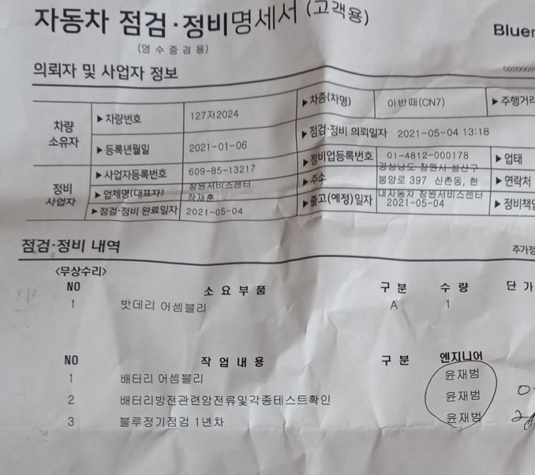 처음에는 정비사님이 자기들도 문제가 있어야 교환이 된다고 해서 차를 놔두고 전류가 이상하게 낭비 되는지를 . 파악 해본다고 하더군요. 이후.2시간뒤. 저보고 와보라고 함.