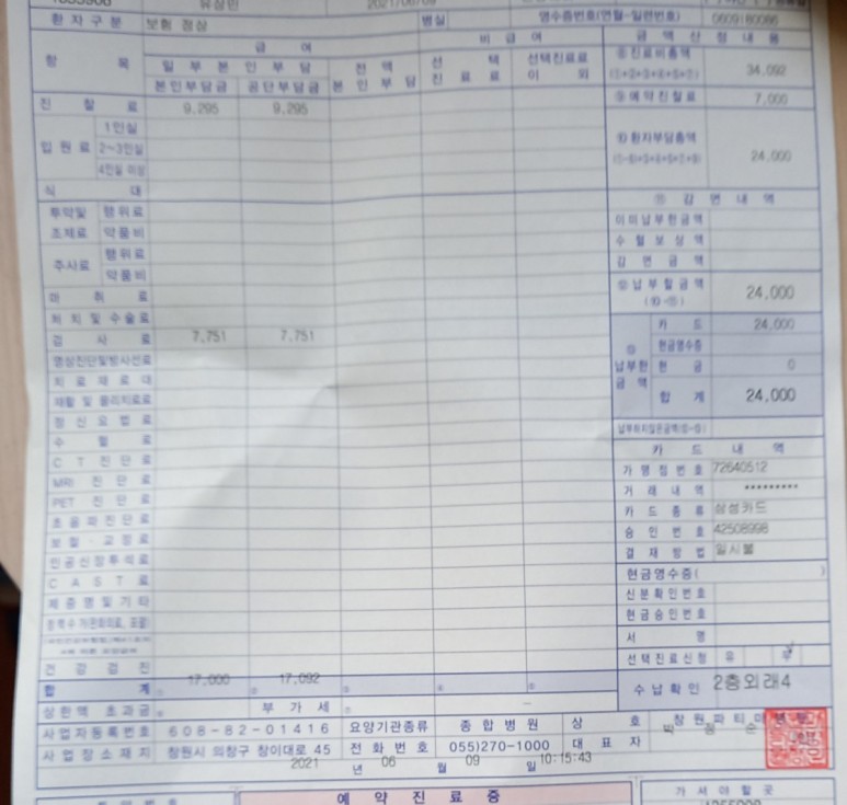 최근 다시 소변 검사 하고 진료비를.수납할려고 했는데 이미 지불했다고 나옴.
