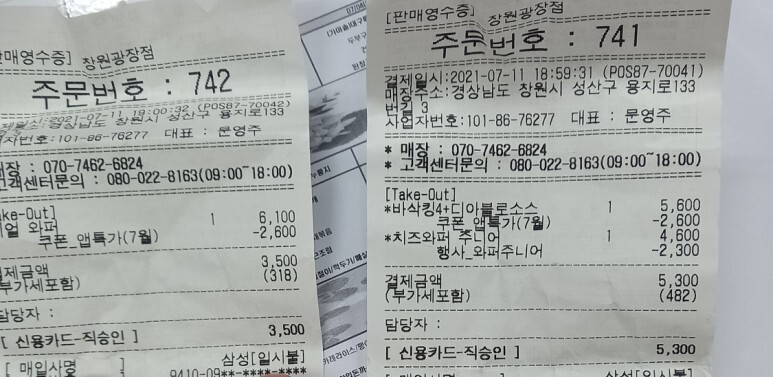 글구 버거킹 ㅂㅅ 같은게.. 어플로 가기전에 미리 주문 넣을 수 있는데. 쿠폰 적용은 또 안됨..어차피 가서 쿠폰 쓸건데... 빼액..괜히 5.7분씩 기달려서..