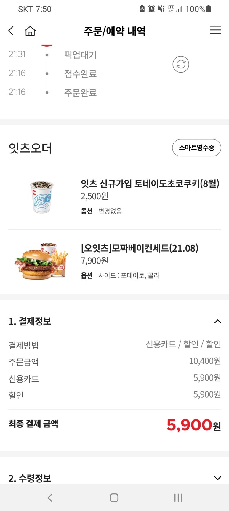 신규가입 쿠폰 과 자동으로 주는 모짜베이컨 .