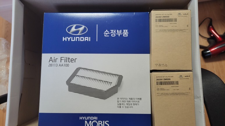 카페에서 에어 필터와 오일필터를 무료로 나눔 받았으며