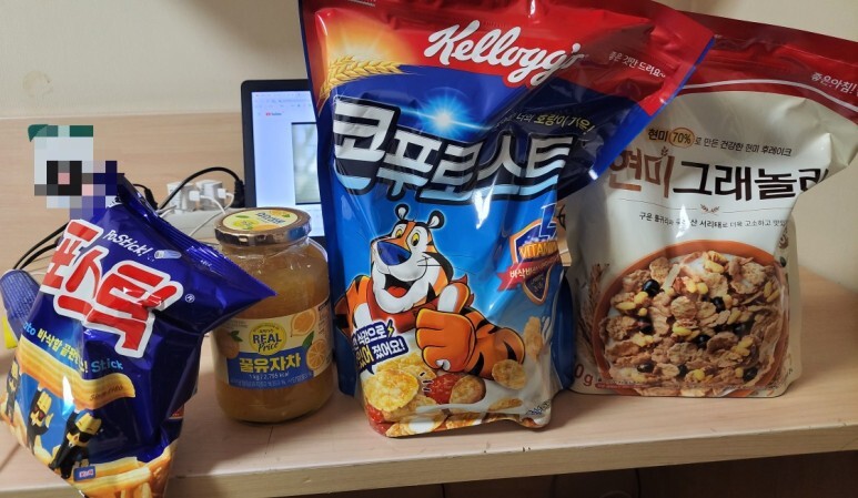주말 오전 아침에 먹을 식량 씨리얼 삼..