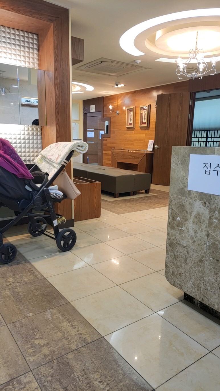 병원 도착하니깐 소아과 답게 애기 울음소리.. 고함 소리 들리고..