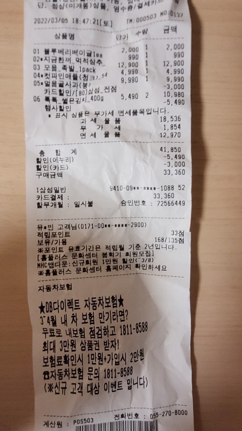 마트에 오랜만에 간 목적은 저 족발이다.. 족발때문에 간 거임.. 그리고 자동차 보험 조회만 하면 주는 상품권 받을려고 했는데.. 둘다 실패임 .. (아래 후술..)