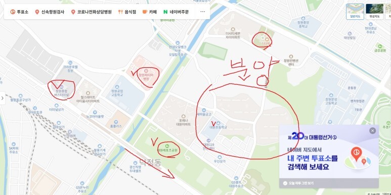 근처에 파티마 병원과. 고속 터미널이 존재 하며 근방에 공단도 끼고 있음. . 또한 창원의 랜드마크 시티세븐도..