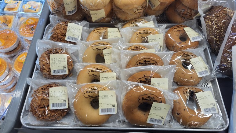 예전에 홈플러스 빵코너 가면 세일도 많이 하고 가격도 쌋는데.. 오랜만에 가니깐 시부레 정책이 바뀌었네.. 할인도 안 하고 .. 별루 였음.. 그나마 영국인들이 그렇게 자주 먹는다는 베이글 하나 사봄... 아 베이글녀는 아니구요..ㅋㅋ