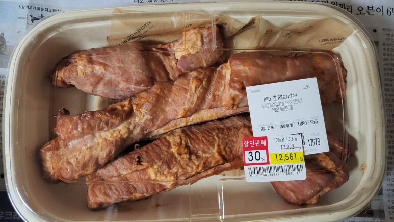 일단 집에 앞전에 산 상추가 많이 남아 족발 류 살려고 했는데. 왜 . 족발 존나 비쌈. 최소 .할인 해도 1.4부터 시작 ㅋㅋ . 훈제 삼겹살 보이길래 삼.