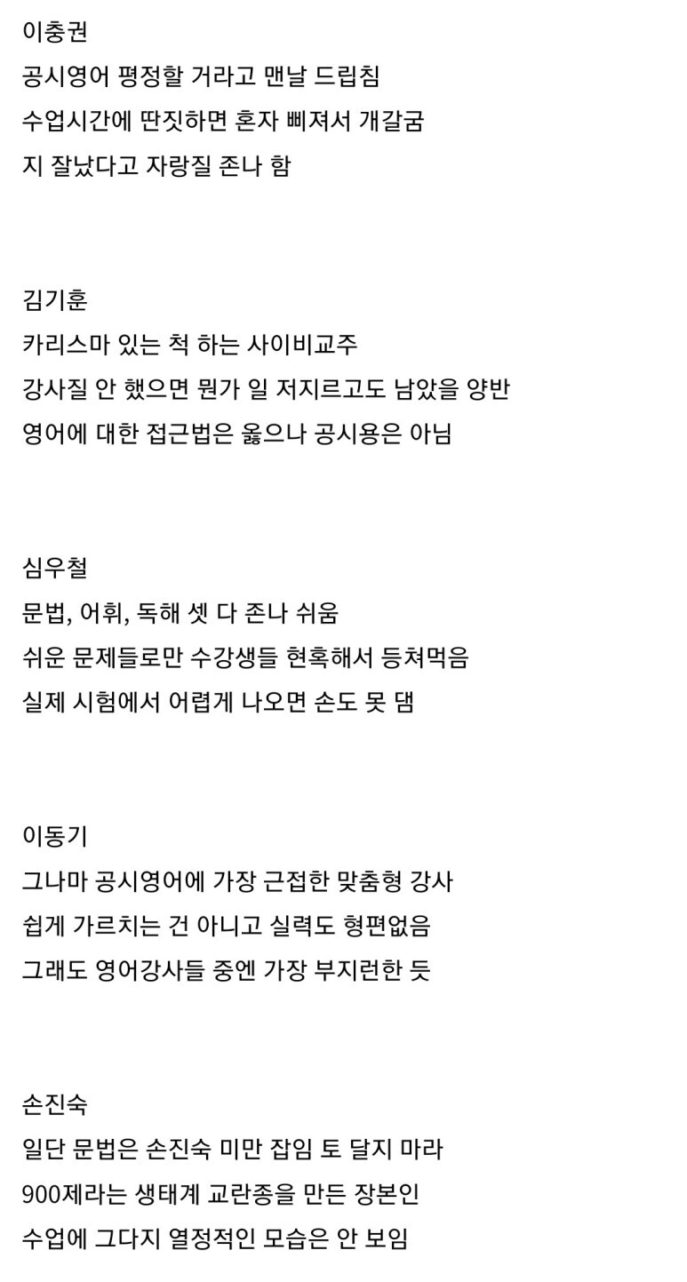 처음엔 정말 내가 찾던 강사였으나.. 점점... 그거 아시죠? 모든 인강 시청자들이 3분의 1 지점에서 포기 한다는거... 저도 3분의 1 구간에서. 아 슈발 아닌데... 이거 아닌데.. 강의를 듣고 나면 남는게 있어야 하는데. 남는것도 없고..... 결국 돌고 돌아 다시 예전에 산 조태정 강의를 듣고 이분을 믿기로 했습니다....