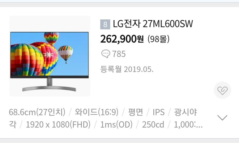 27인치 . 2017년 발매품. 존나리 오래 됬다. 27인치 분야 베스트 셀러. 21만선 .무난해서..