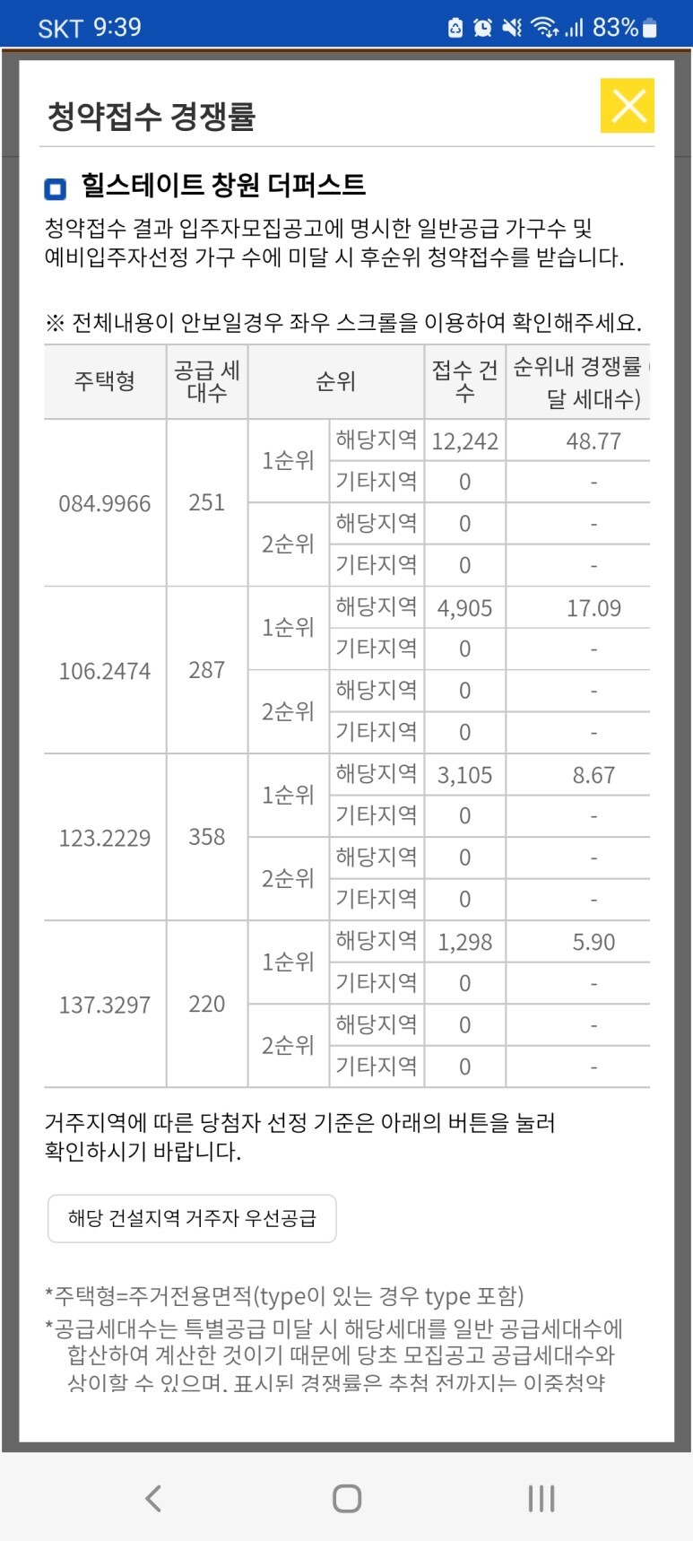 1순위 당해지역자들 우선 공급하고 이후 1순위 기타로 되기 때문에 . 멸망이다.