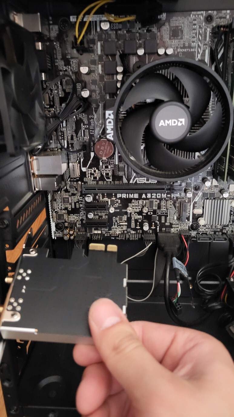 이게 pci 카드 라는건데 저기 꼽자.. 3개 중에 아무곳이나 꼽으면 됨.