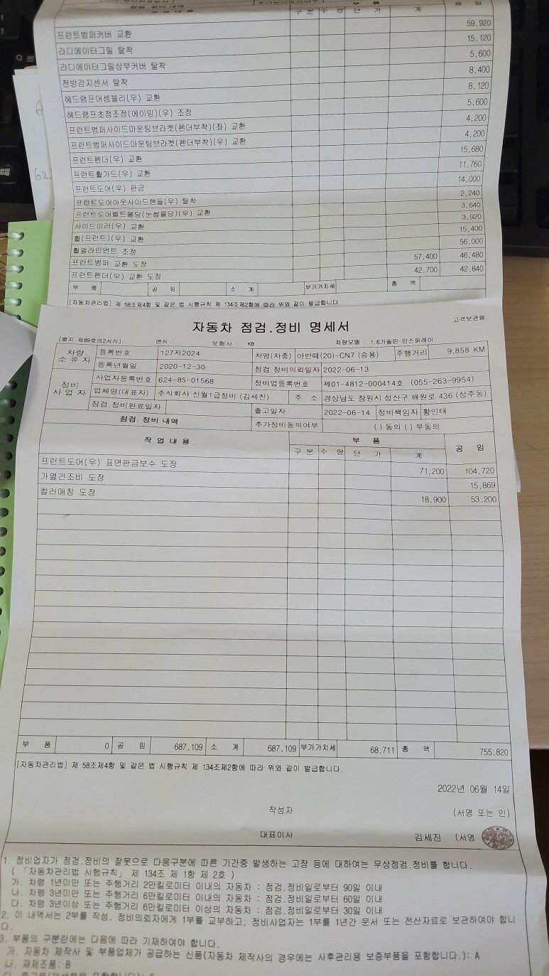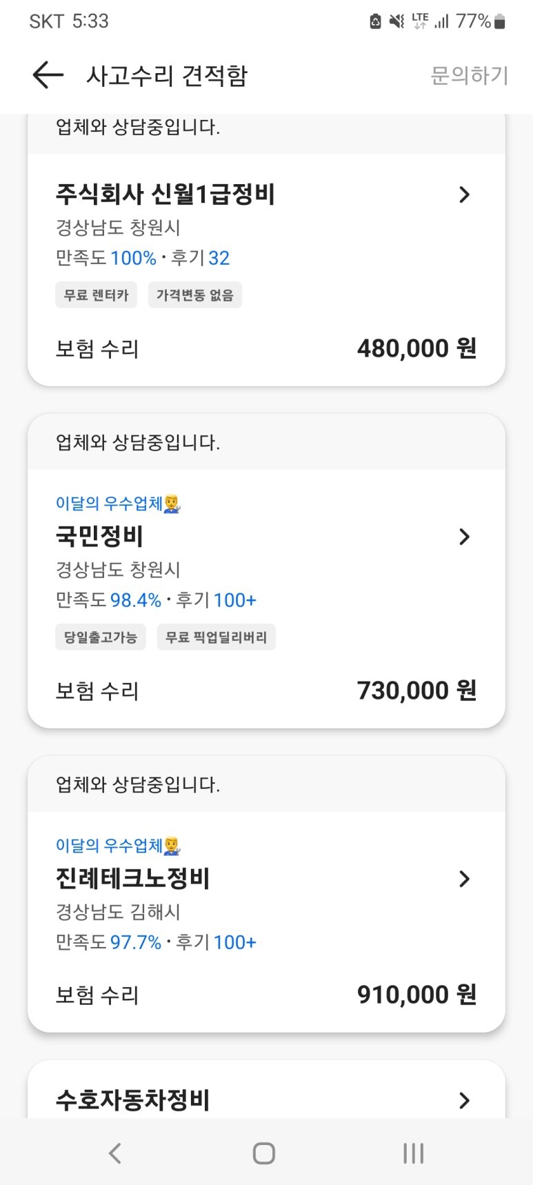 어차피 보험 처리라서 수리비는 거의 비슷하다.