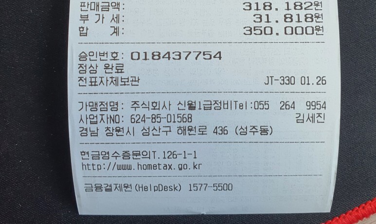 3. 업체에서 잘 해주심. 수리 완료. 자기 부담금 35만원 소요. 190만원 나옴.ㅠ.ㅠ