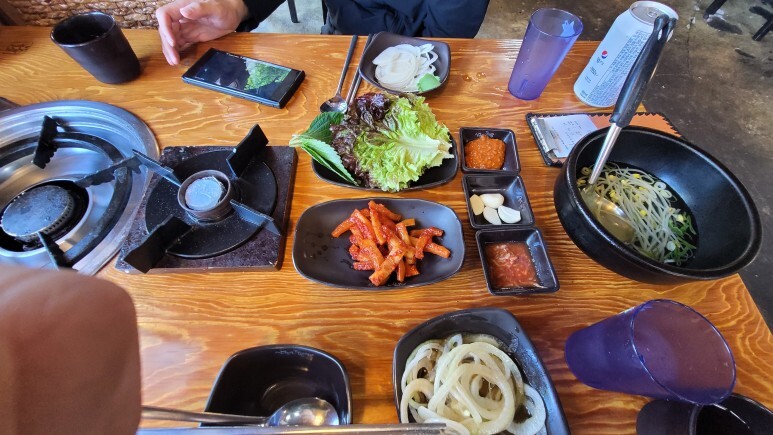 그나저나 옆에 계란. 소세지.동그랑땡.김치전등 먹을 수 있게 세팅 되어 있는데. 그닥.. 이였다 .