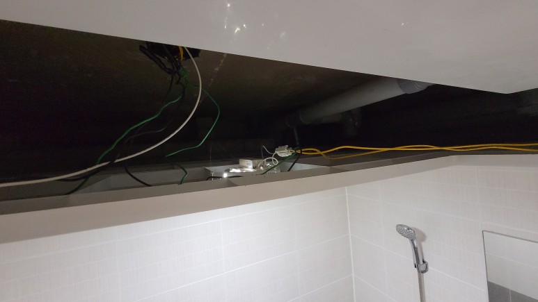 일단 스위치에서 욕실 천장으로 선을 보내기에 앞서 선 상태 확인. 좆만한 cd관이 보인다. (고난길)