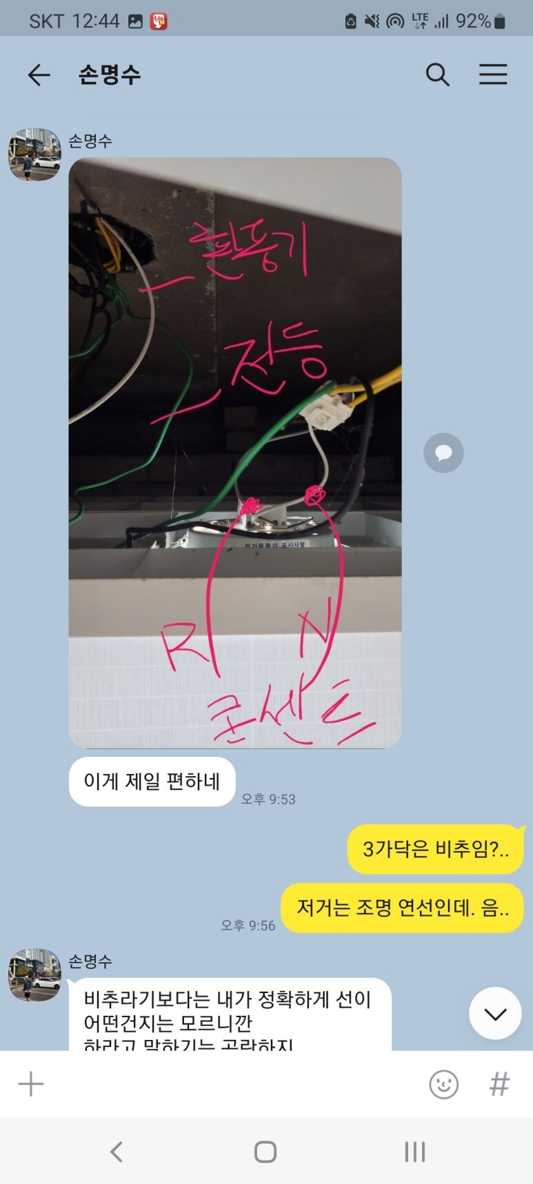그리고 주변에 공사 좀 하고 전기에.대해 잘 아는 동생 에게 묻어 봄.(끝나고 커피 기프티콘 보냄)