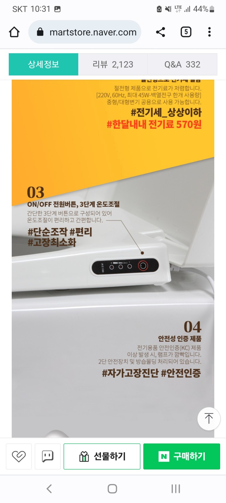 제조사에서는 너무 따뜻한것보다 전기료를 .. 절약했다고, 동급 제품대비 최저 전기료라고는 하나 .. 그리고 시부레 가격이 비싸다. 다른 제품들 4.7하던데 이거는 시부레 .. 5.7.;;