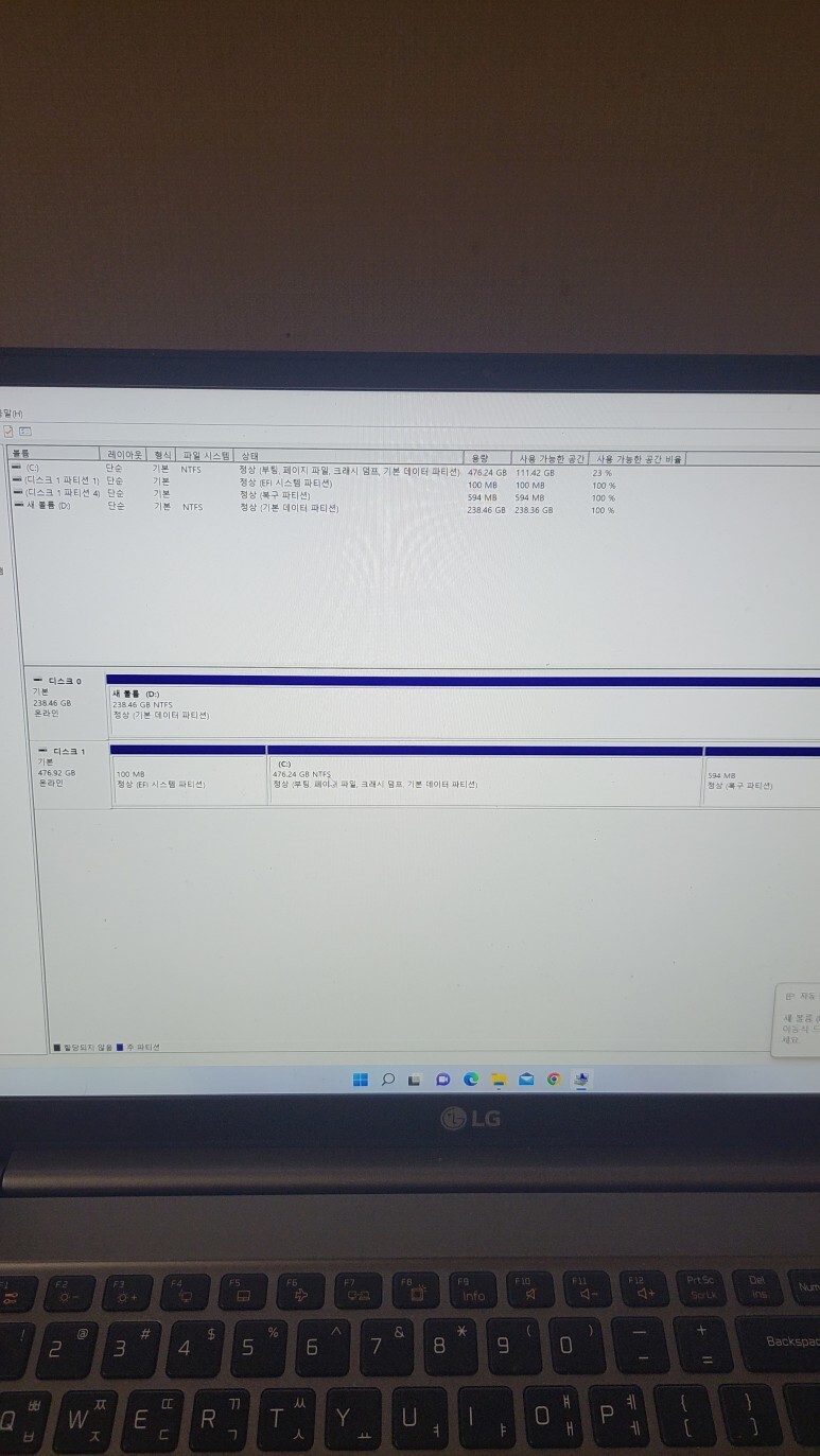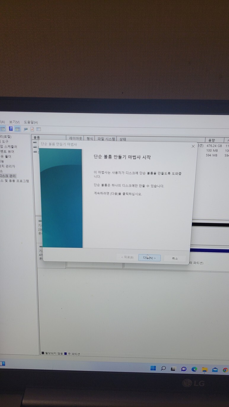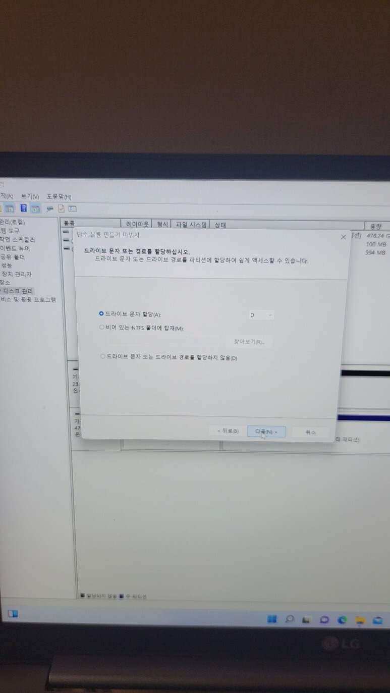 컴퓨터 옆버튼 관리 창에서 . 저렇게 .. 클릭해서 새 단순 볼륨을 해줘야 함