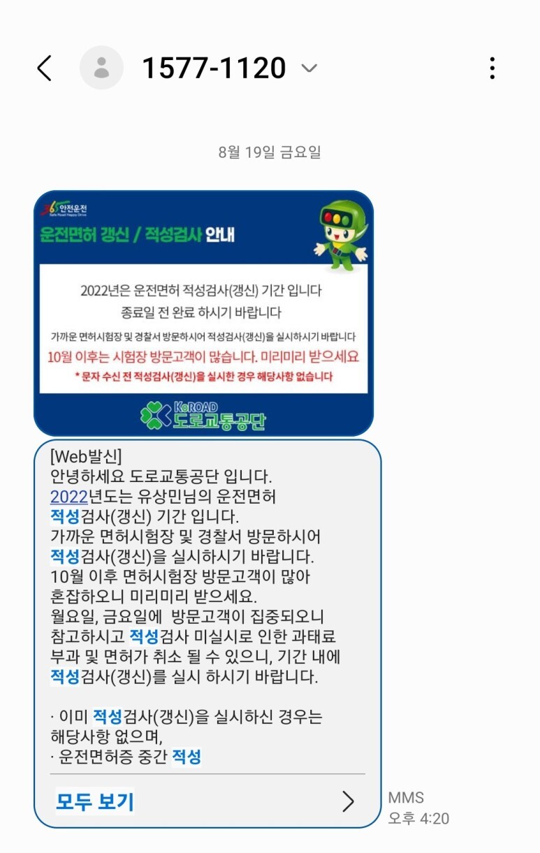 무슨 적성 및 시력 검사 10년 주기가 되어서 무조건 갱신 하라고 문자 날라옴.
