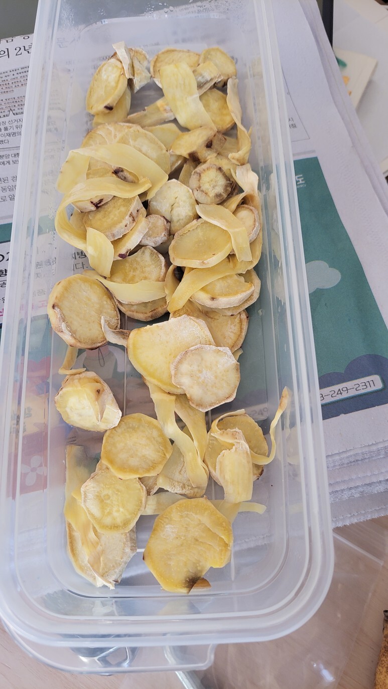 4. 물기가 없어질때까지 말리기 .( 필자는 키친타월이 없어서 그냥 도마에 대충 4-5시간 말림)